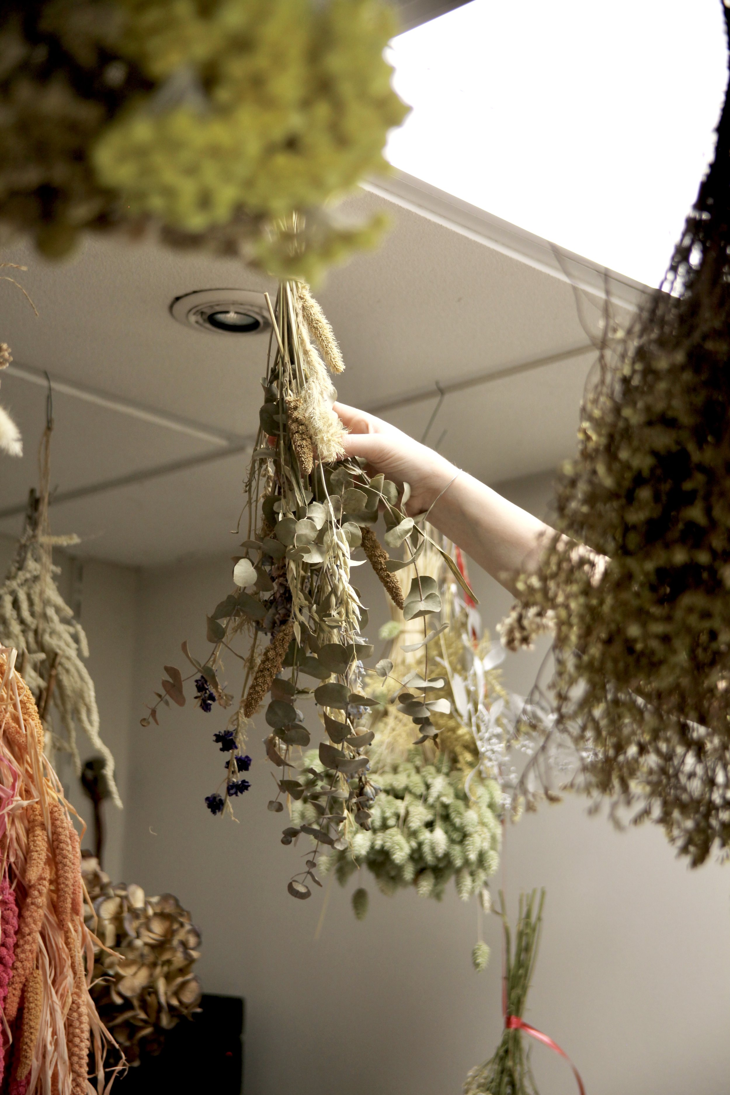Nous récupérons également les fleurs fraîches non vendues pour les faire séchées, et ainsi éviter le gaspillage.