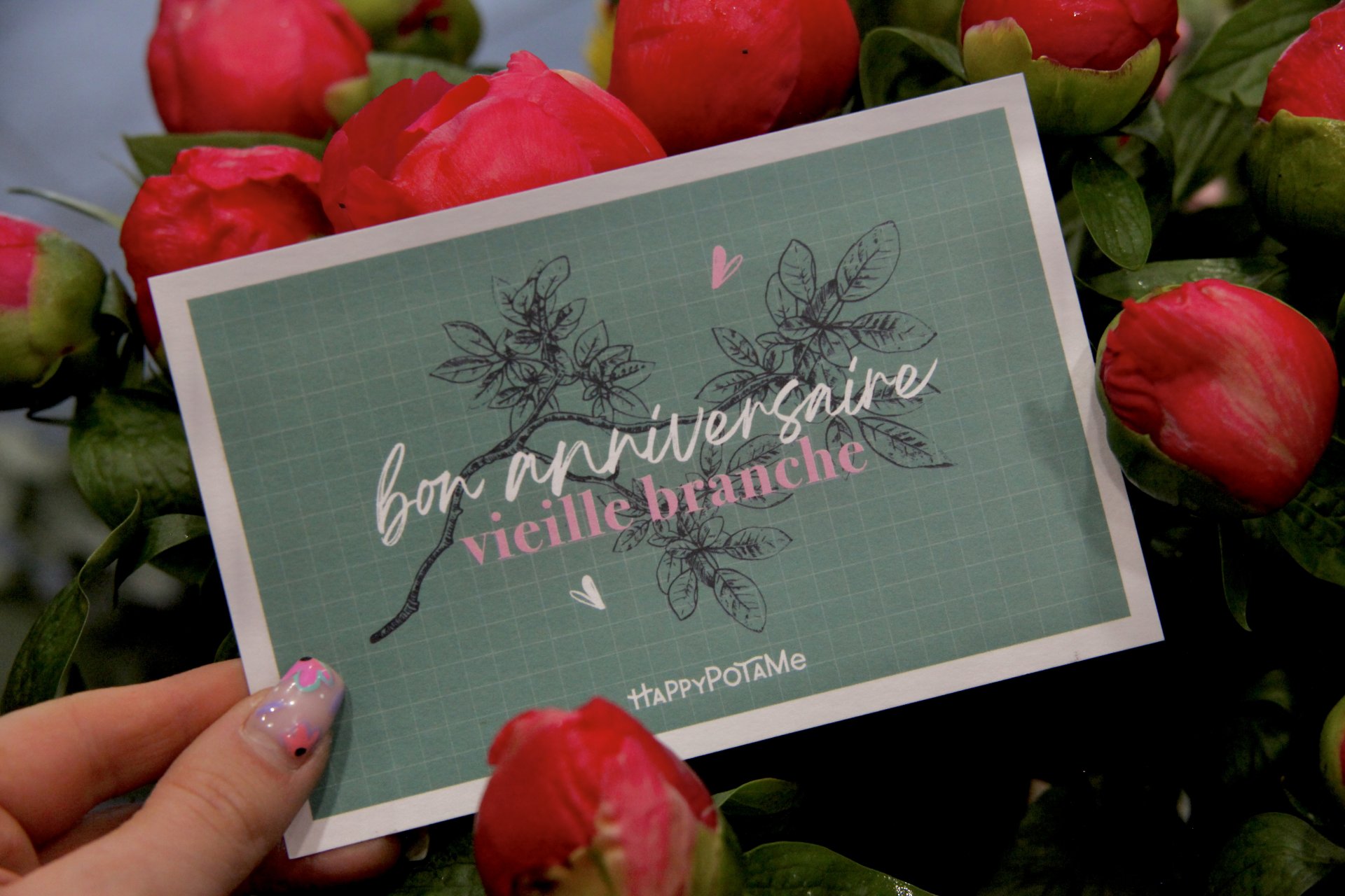 Happypotame : elle propose de jolies cartes colorées, accompagnées de jeux de mots mignons, rigolos, et parfois même osés ! De belles illustrations mettent en scène des animaux et des fleurs.