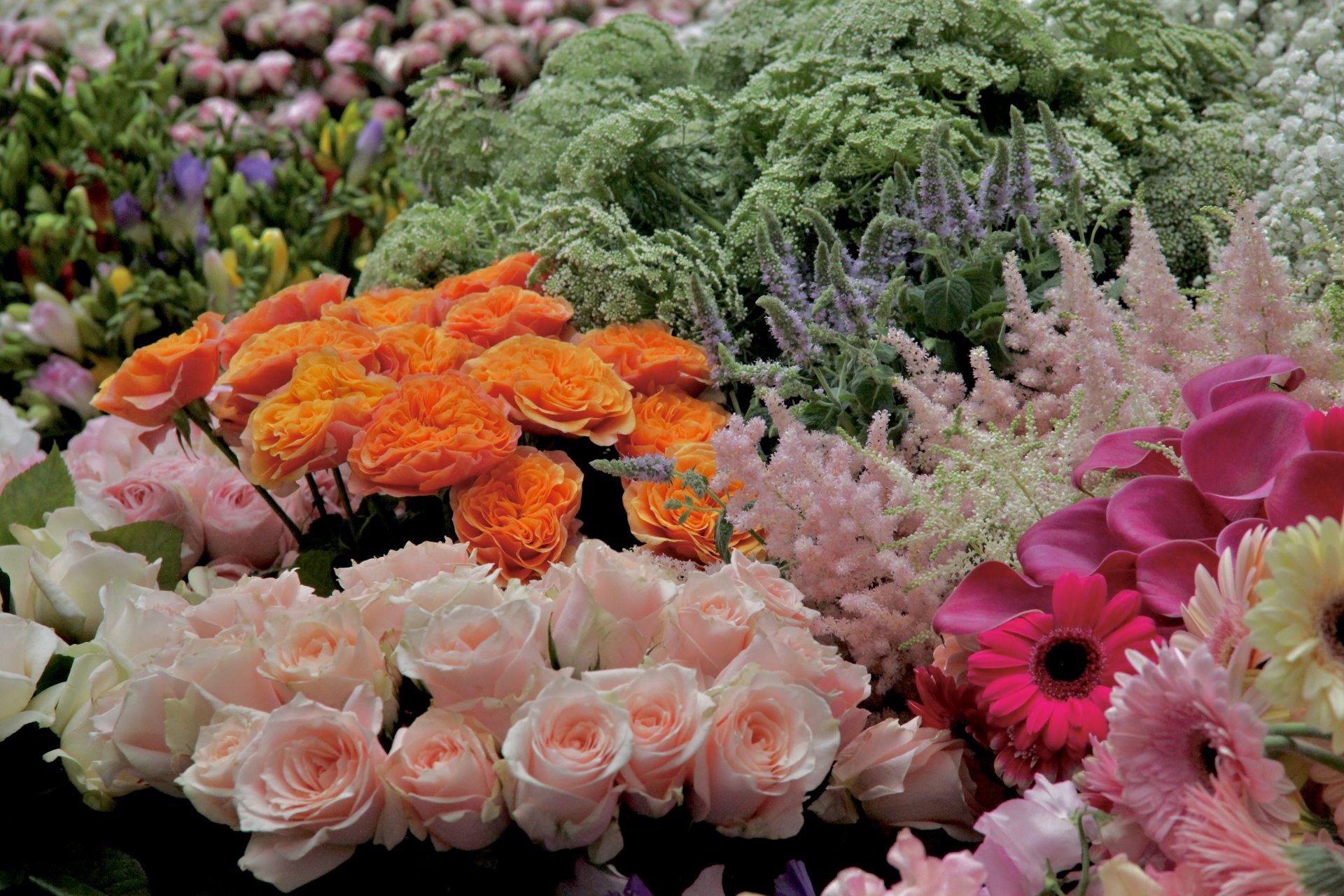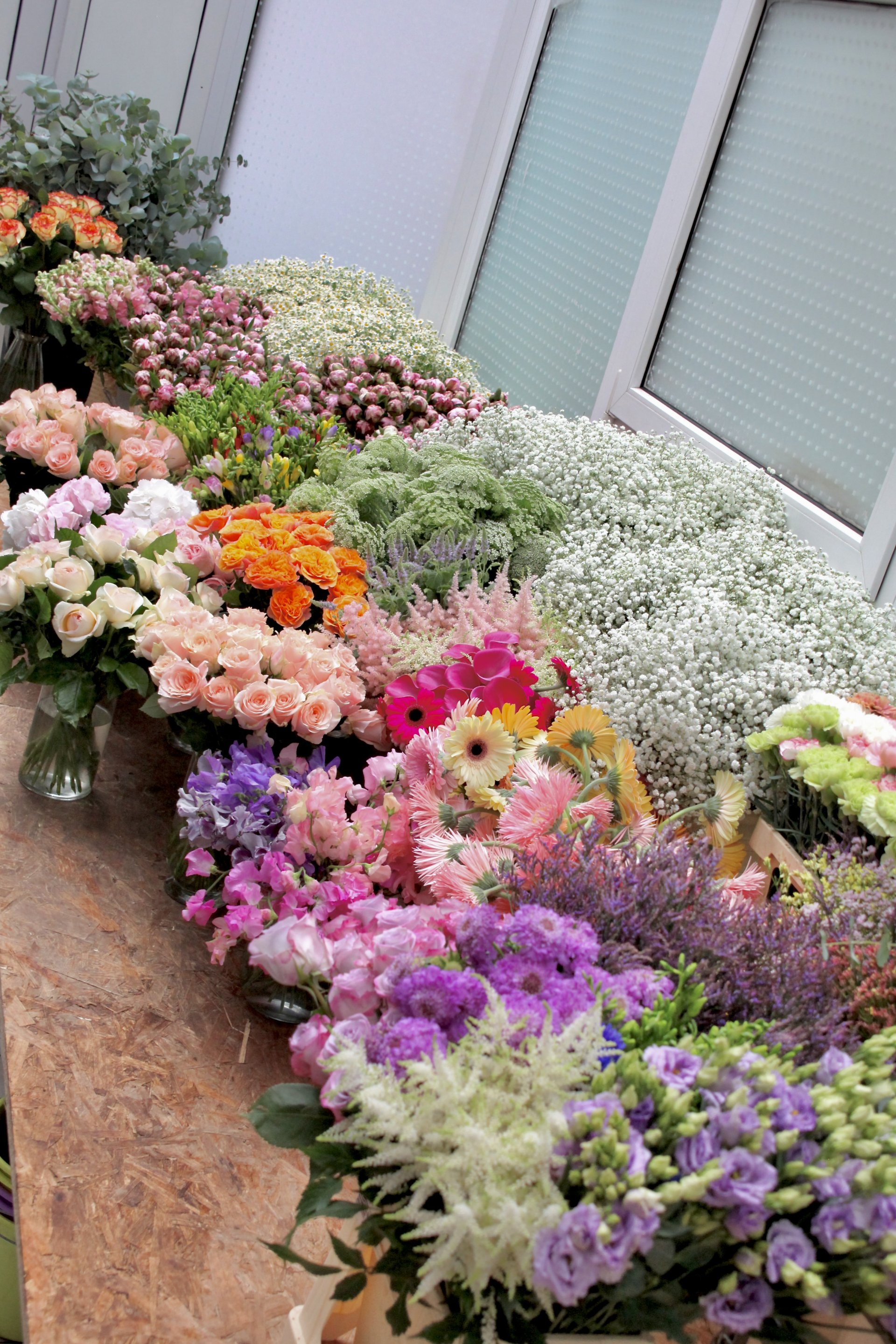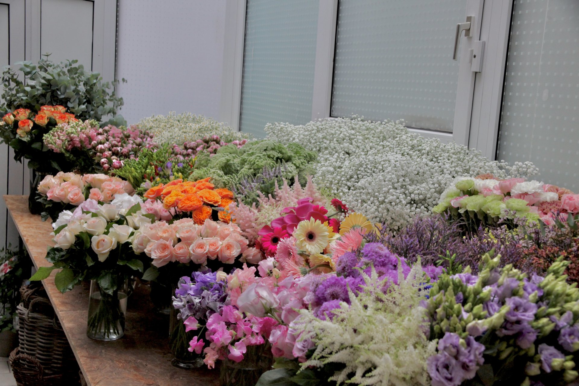 Les plantes ont trouvé leurs places à la boutique, les fleurs coupées sont dans les vases et les bouquets sont en train d'être confectionné.