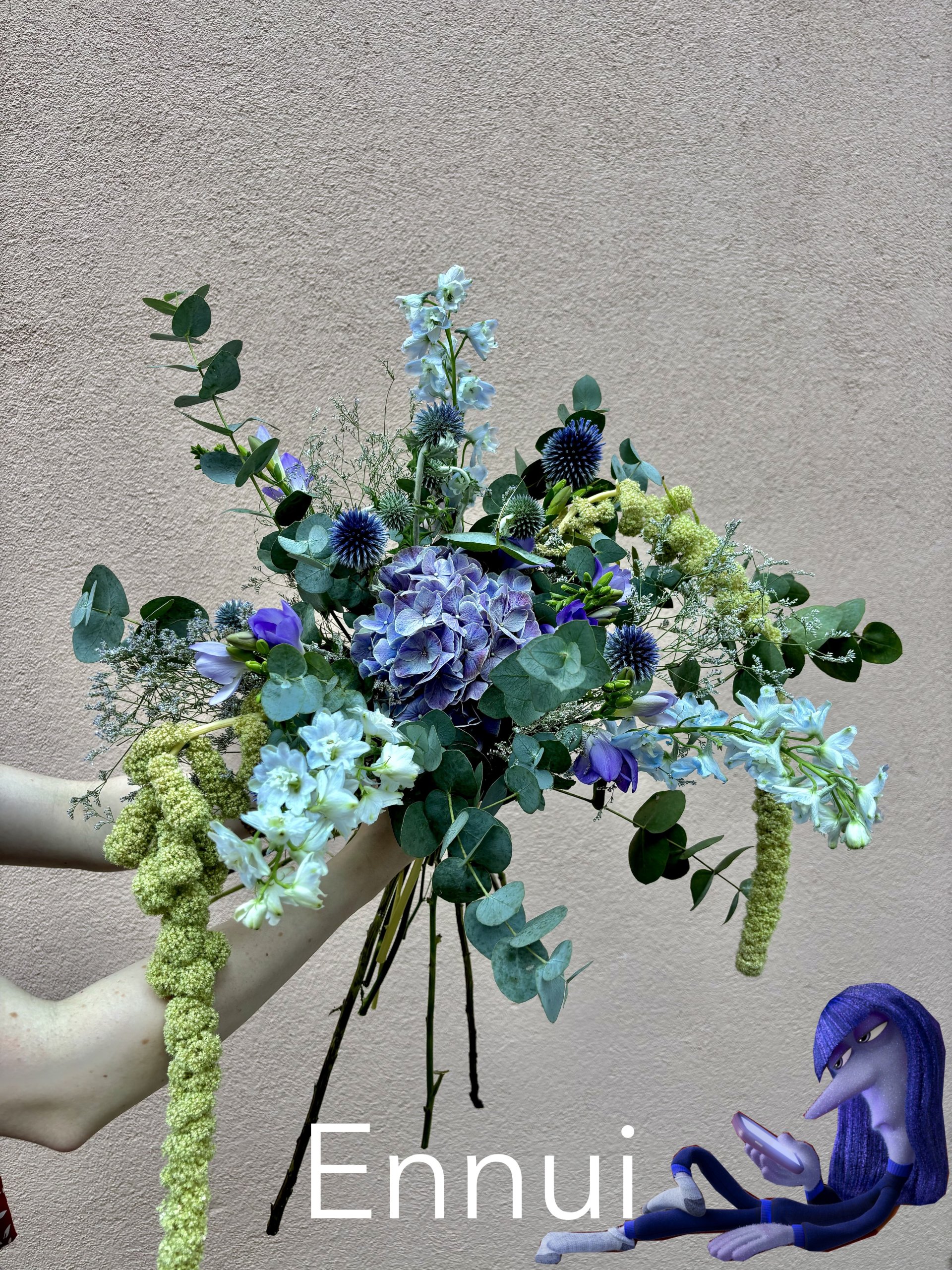 💜 Ennui : entière bleu foncé, avec quelques touches de bleu claire ➡️ « s’ennuyer est tellement triste »