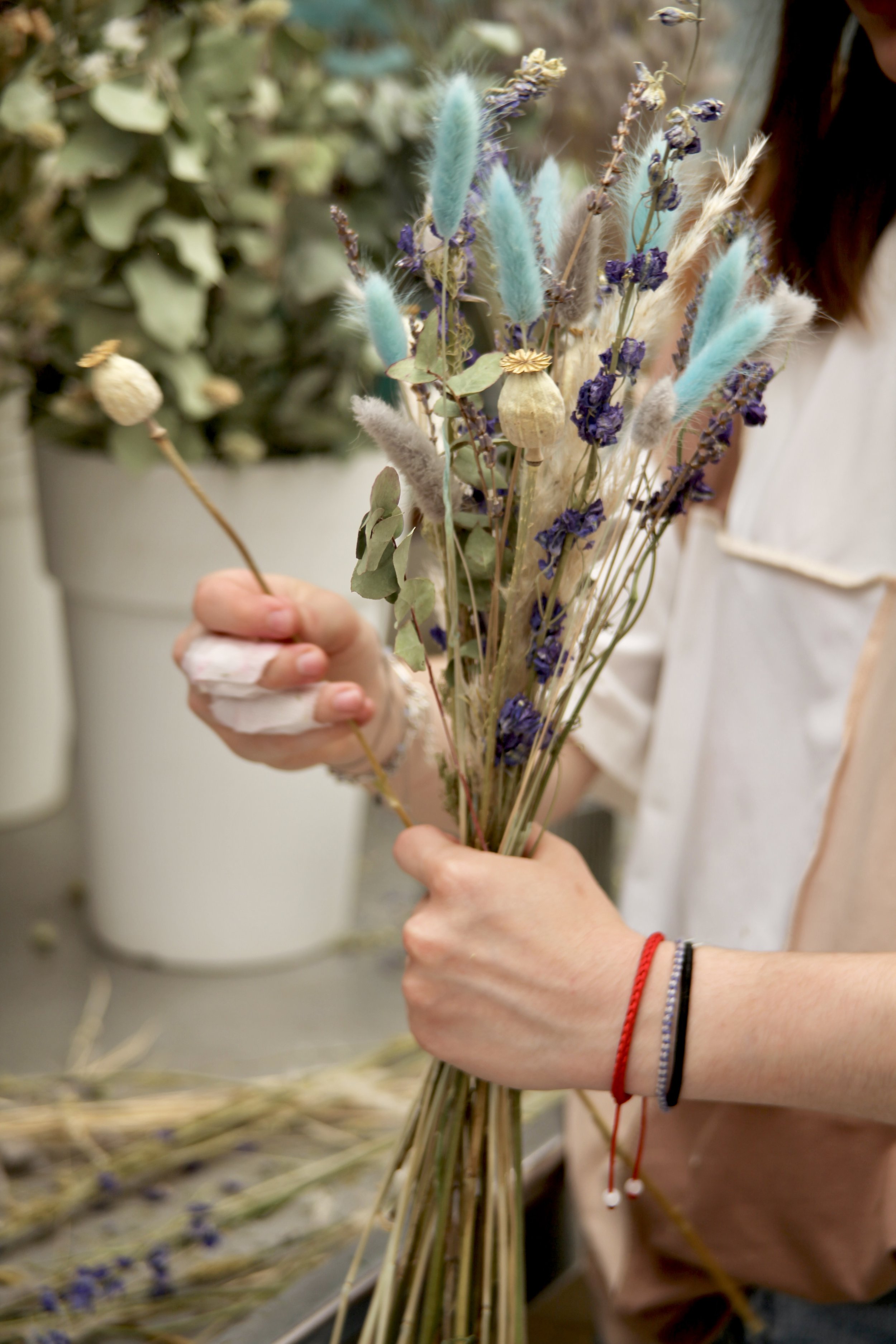 Nous récupérons également les fleurs fraîches non vendues pour les faire séchées, et ainsi éviter le gaspillage.