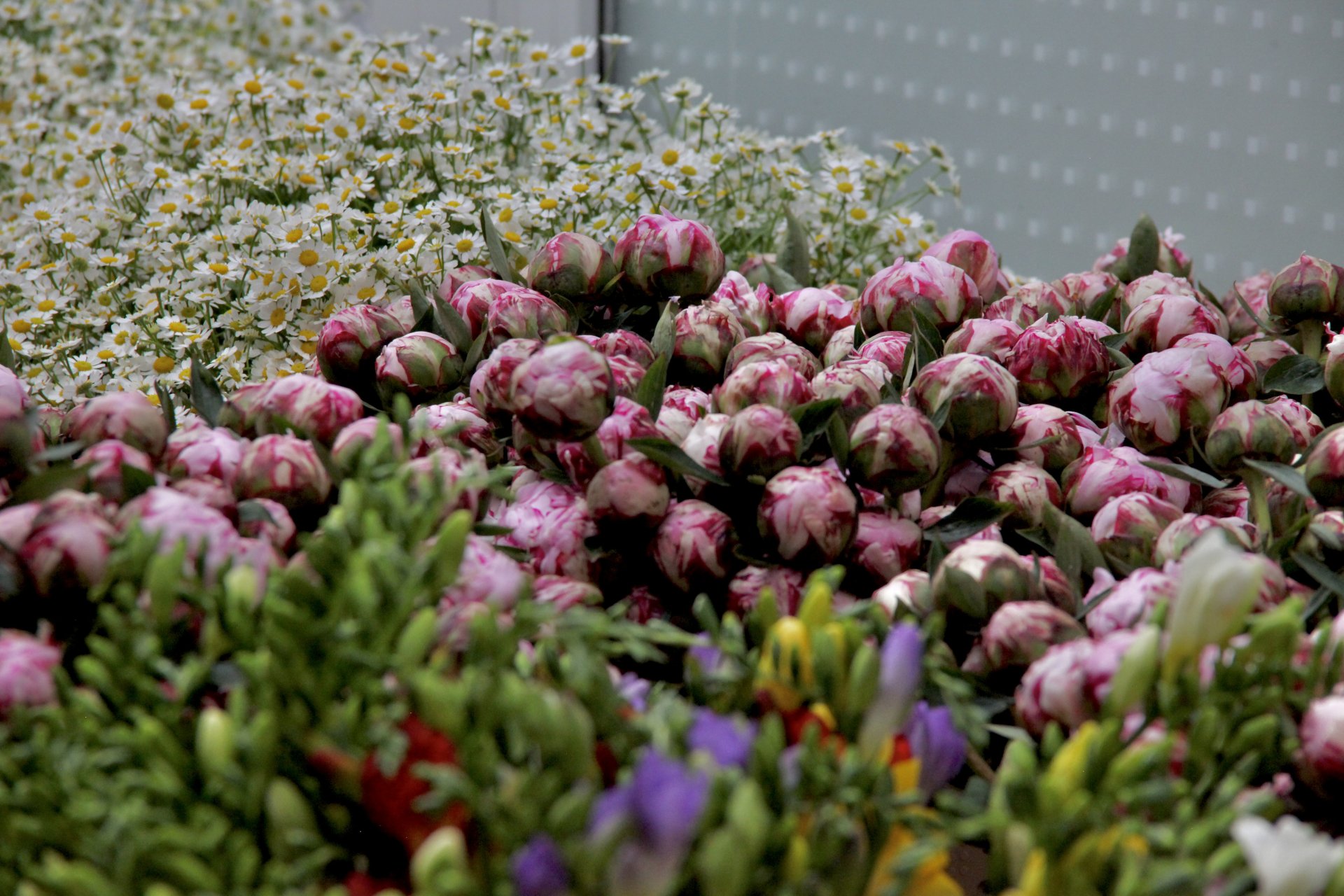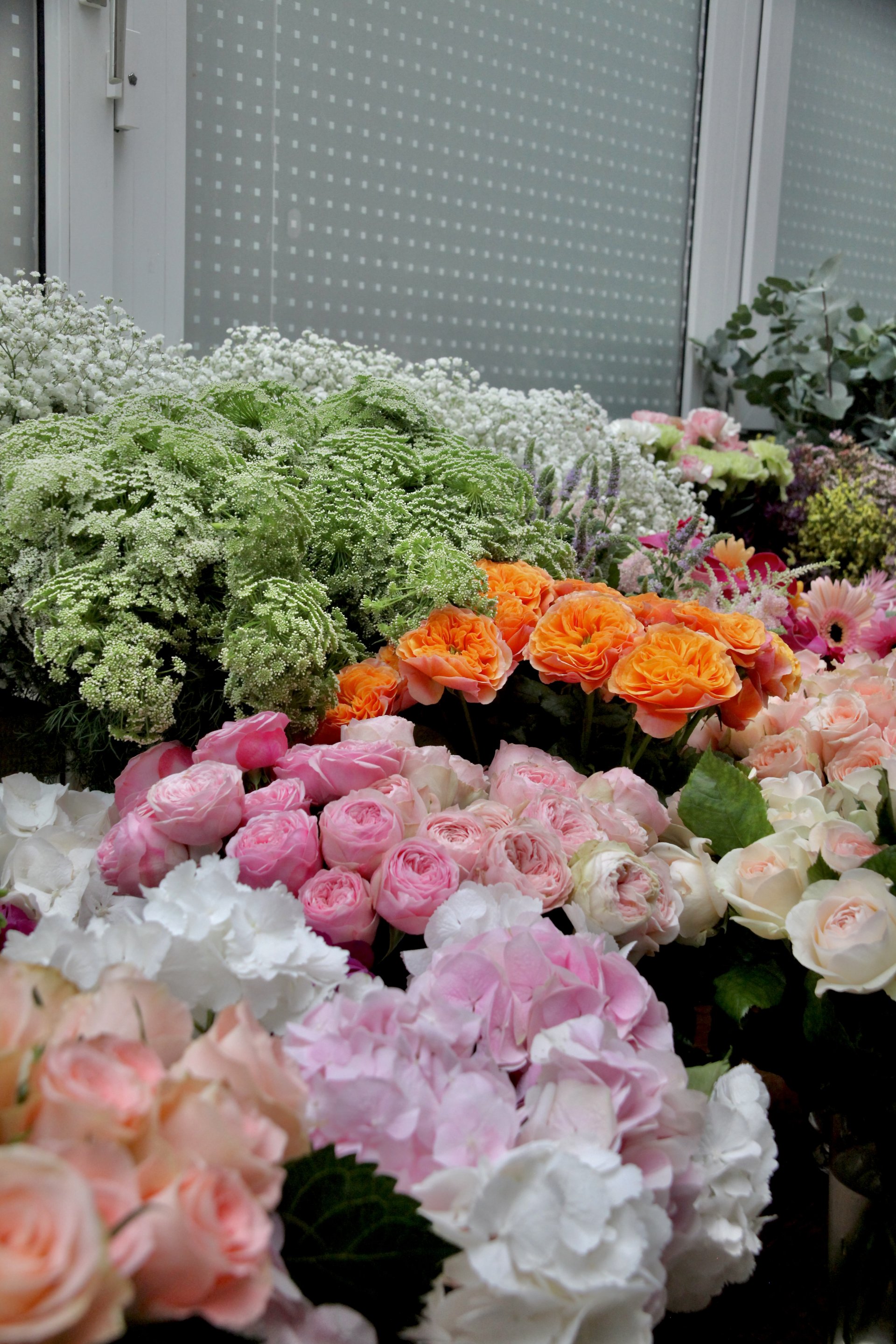 Les plantes ont trouvé leurs places à la boutique, les fleurs coupées sont dans les vases et les bouquets sont en train d'être confectionné.